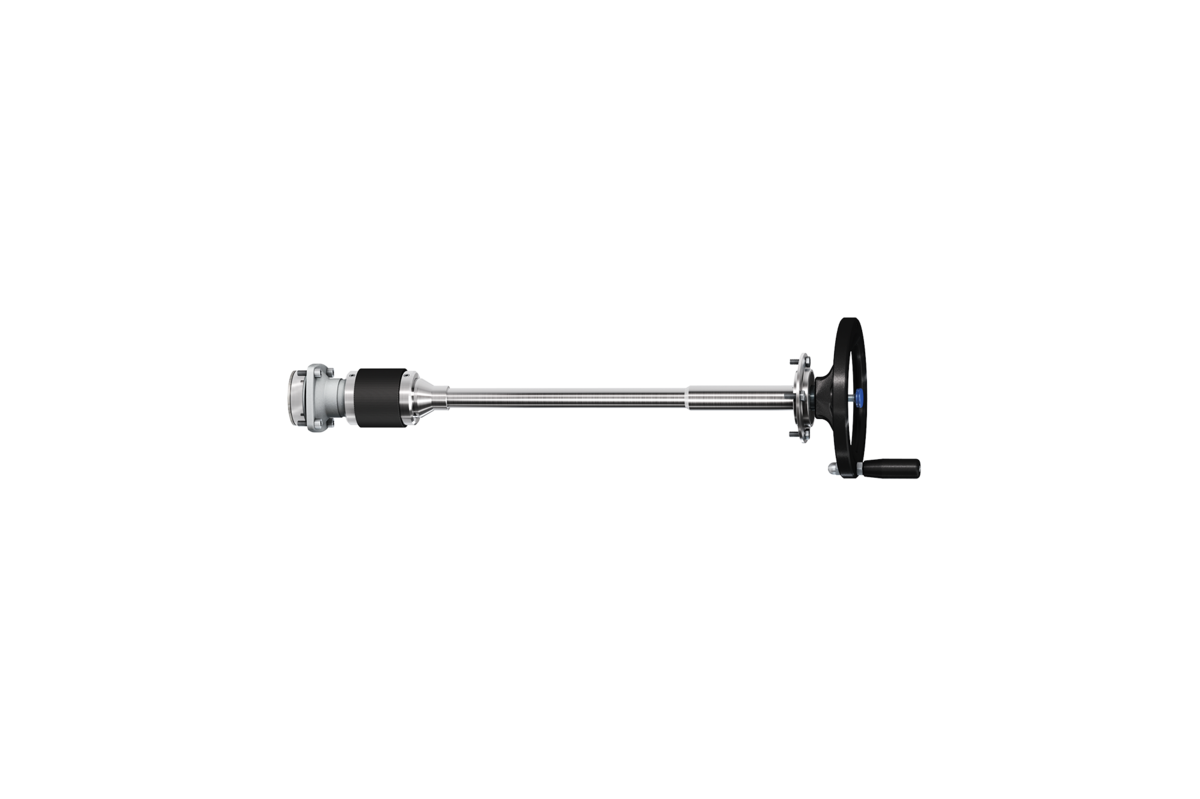 Przedłużony wałek koła ręcznego sprawia, że koło ręczne można obsługiwać również w niedostępnych miejscach; można go np. poprowadzić przez ściany.